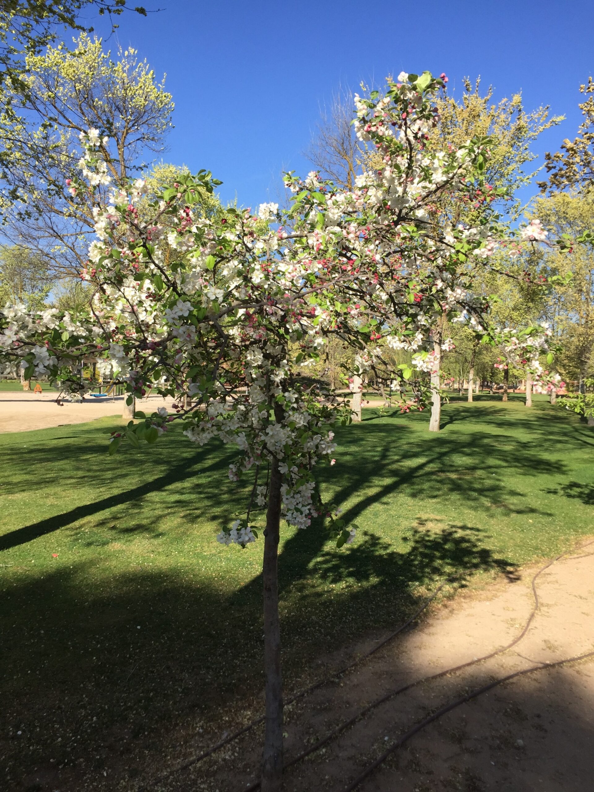 El Manzano ornamental es un Arbolito que no supera los 6m de altura. Es de crecimiento rápido, hoja caduca y ovales verdes que se vuelven anaranjadas o amarillas en otoño, de 8-12cm de longitud. Sus flores son blancas-rosadas, blancas, rojas o fucsias (dependiendo de la especie y de la variedad) de unos 5cm de diámetro y el fruto es una manzana muy pequeña, de unos 5 cm de diámetro, verde al principio y que se vuelve roja, amarilla o fucsia en otoño.